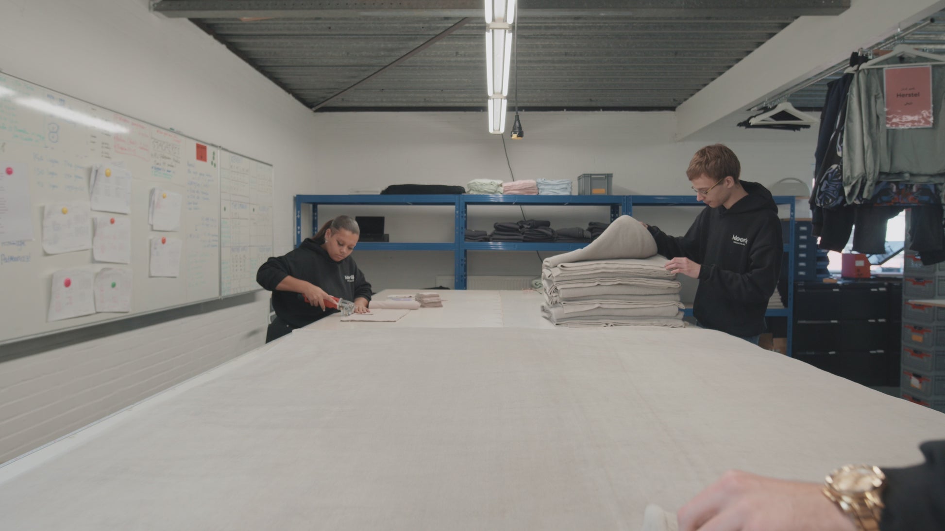Together, we strive for a better future for the fashion industry. By producing locally and working with people from refugee backgrounds, we aim to create a positive impact on the climate, people, and the economy."